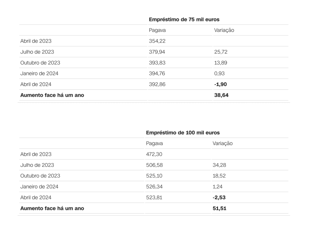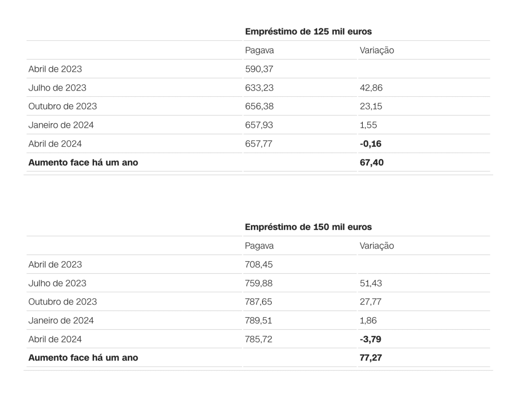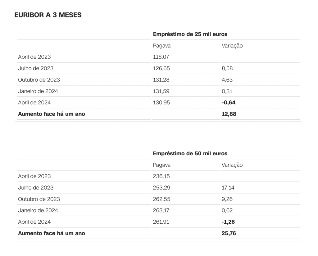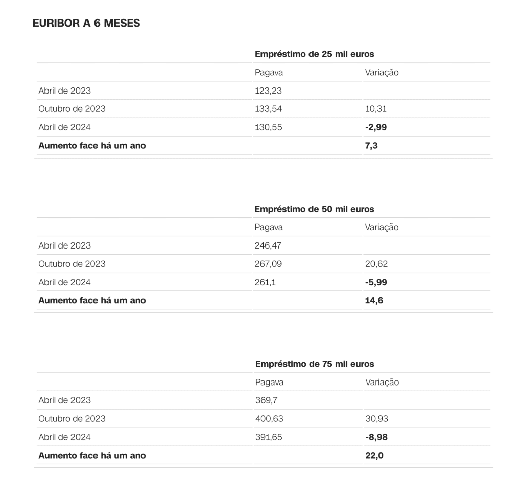 Tem crédito à habitação? Saiba sobre seu empréstimo As simulações feitas com base no simulador do Banco de Portugal permitem verificar que em todos os prazos há uma diminuição da prestação a pagar ao banco. Confira o seu caso. Quanto já aumentou e como vai evoluir em abril a prestação da casa.Empréstimo a 30 anos com spread de 1% NOTA 1 | O que são as taxas Euribor Euribor é a abreviatura de Euro Interbank Offered Rate. As taxas Euribor baseiam-se nas taxas de juro que um conjunto de bancos europeus está disposto a pagar para emprestar dinheiro uns aos outros. No cálculo, os 15% mais altos e mais baixos de todas as cotações recolhidas são eliminados. As restantes taxas são calculadas como média e arredondadas a três casas decimais. O valor das taxas Euribor é determinado e publicado diariamente. Existem cinco taxas Euribor diferentes, todas com diferentes maturidades (uma semana, um mês, três meses, seis meses e 12 meses). NOTA 2 | O BCE tem três taxas de juro de referência: – A taxa das principais operações de refinanciamento, sob a qual os bancos podem contrair empréstimos junto do BCE pelo prazo de uma semana: está nos 4,50%, mas esteve fixada em zero entre março de 2016 e julho do ano passado; – A taxa de depósito, que determina os juros que os bancos recebem pelos depósitos realizados junto do BCE: está em 4%. Mas entre julho de 2012 e junho de 2013 era de zero. E entre junho de 2013 e julho do ano passado era negativa, obrigando os bancos a pagar pelos depósitos que faziam no BCE; – E a taxa de cedência de liquidez, que determina o juro que os bancos pagam quando contraem empréstimos junto do BCE pelo prazo de um dia (overnight). Está atualmente em 4,75%. Fonte: cnnportugal.iol.pt – https://cnnportugal.iol.pt/emprestimo-casa/prestacao/tem-credito-a-habitacao-veja-aqui-o-que-vai-acontecer-ao-seu-emprestimo/20240401/660a7883d34e0498921f3eec